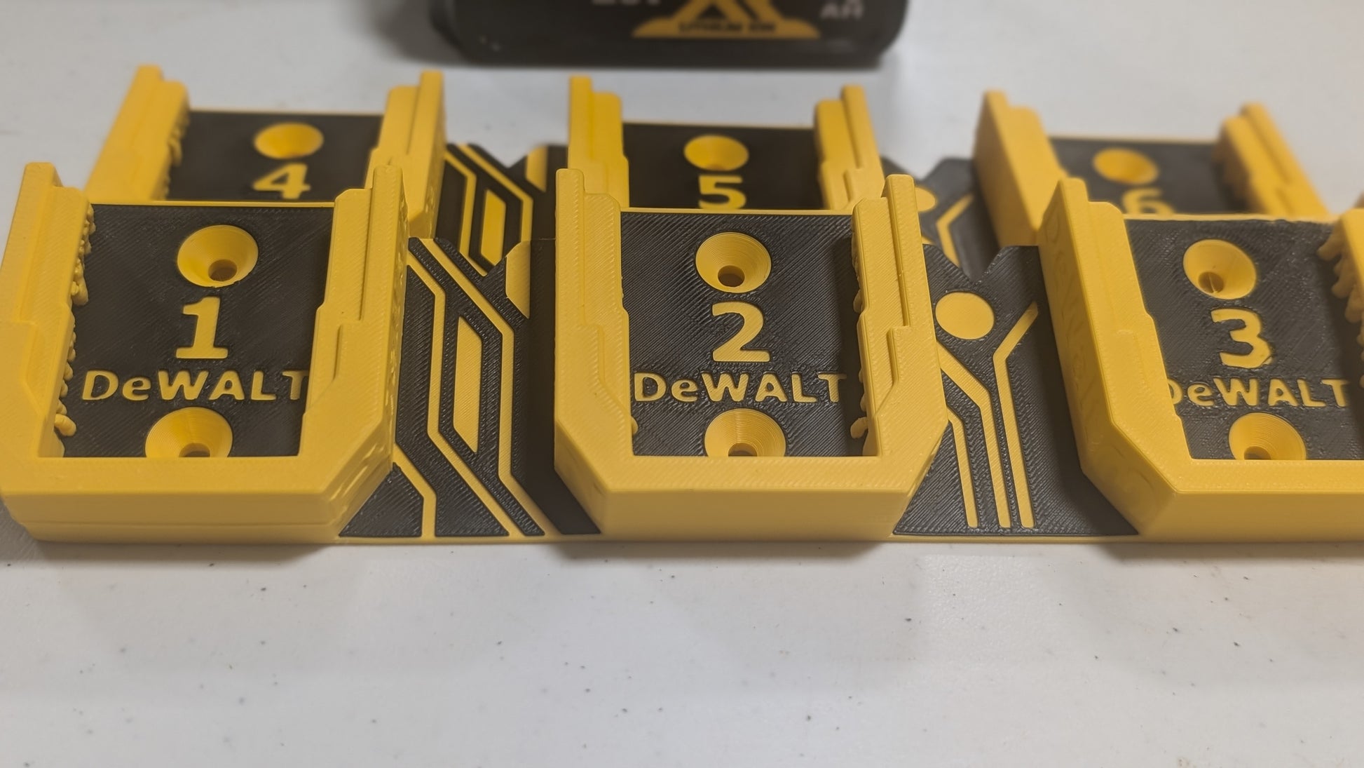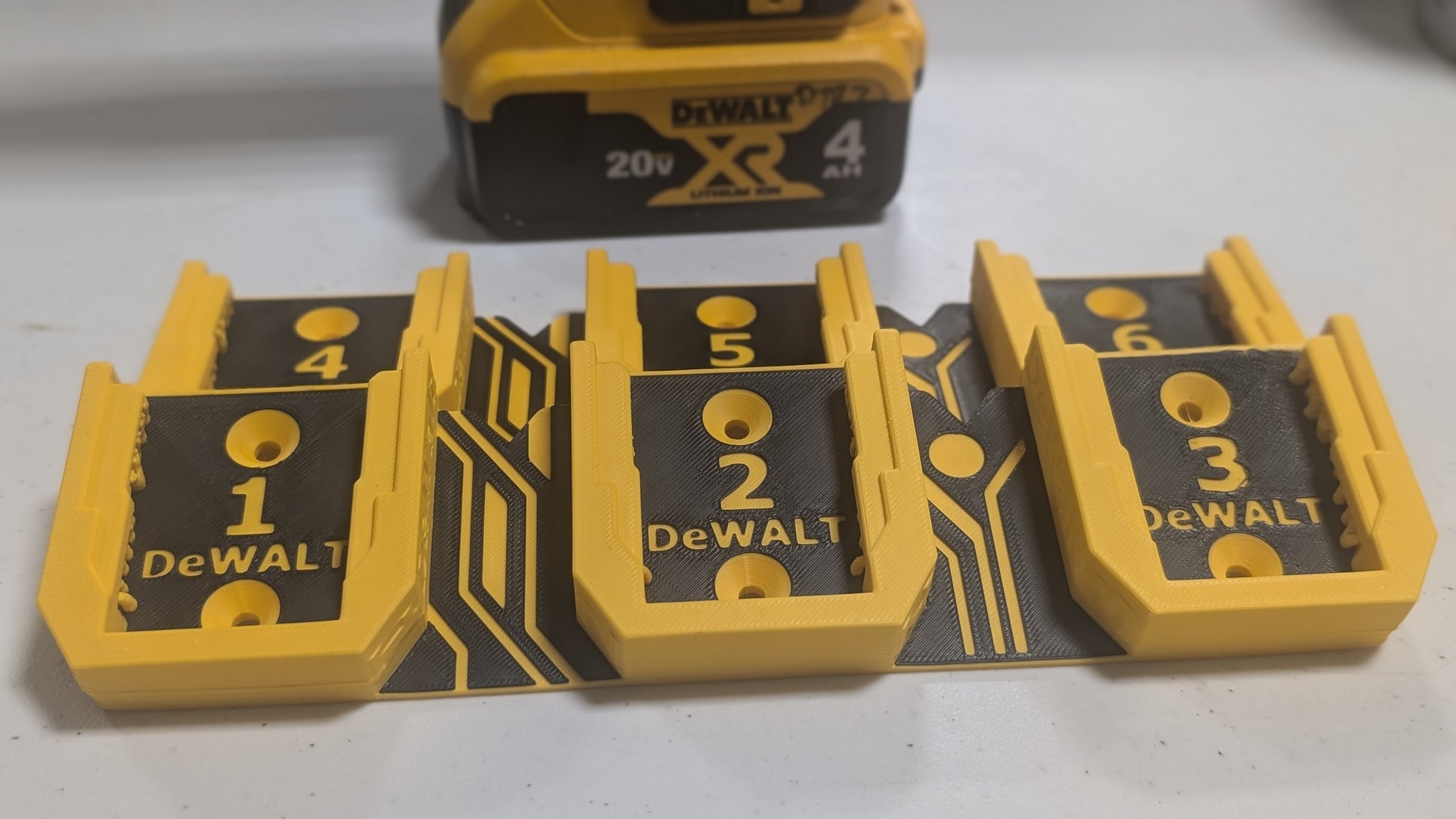 Keep your DeWalt 20V/60V batteries organized and easy to grab with these durable 3D printed battery holders! Perfect for the workshop, garage, or tool trailer. Each holder securely stores 3 DeWalt FlexVolt batteries with clearly numbered slots for fast identification.