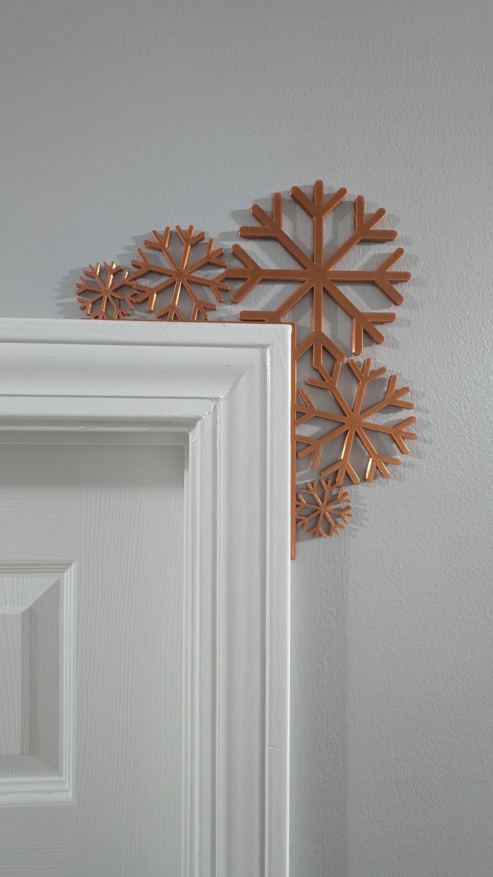 Just in time for the holidays these Snow flake for hangers will be festive cheer to any room. Simply place on the frame of any door. No nailing or screwing required. Snow flakes come in a set of 2